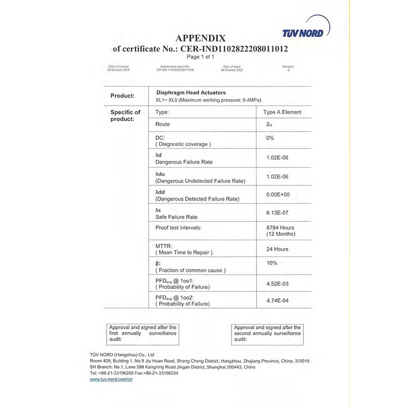 薄膜型執行器 SIL證書 2